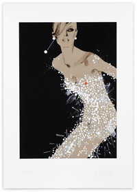 In 1996, the Financial Times commissioned him to draw at the couture shows and since then David has become known principally as a fashion illustrator. His reports from the shows have been seen internationally, in the US, China, Australia and the Middle East, as well as in almost every leading UK broadsheet and supplement.