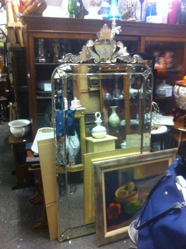 I have been doing some vintage hunting as well, and came across this real antique venetian mirror. This is the real deal and not some new imitation mirror. It was gorgeous, but had to pass it up, cause I have a lovely vintage faux bamboo mirror that I have to hang up at home. Pictures of the bamboo mirror will soon be posted.